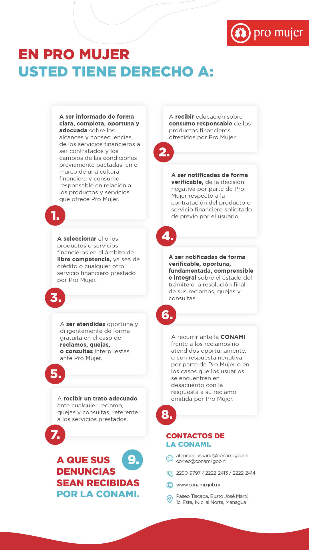 En Pro Mujer puede interponer una queja, reclamo, sugerencia o consulta a través de los siguientes medios: